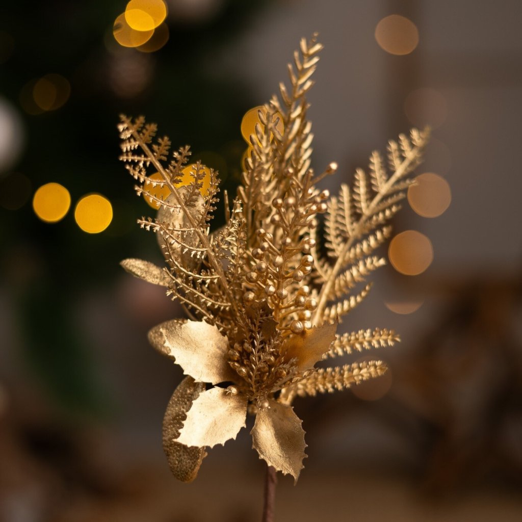 Zlatý zápich vianočný kvet 28cm. Vhodné ako doplnok vencov a vianočných aranžmánov.