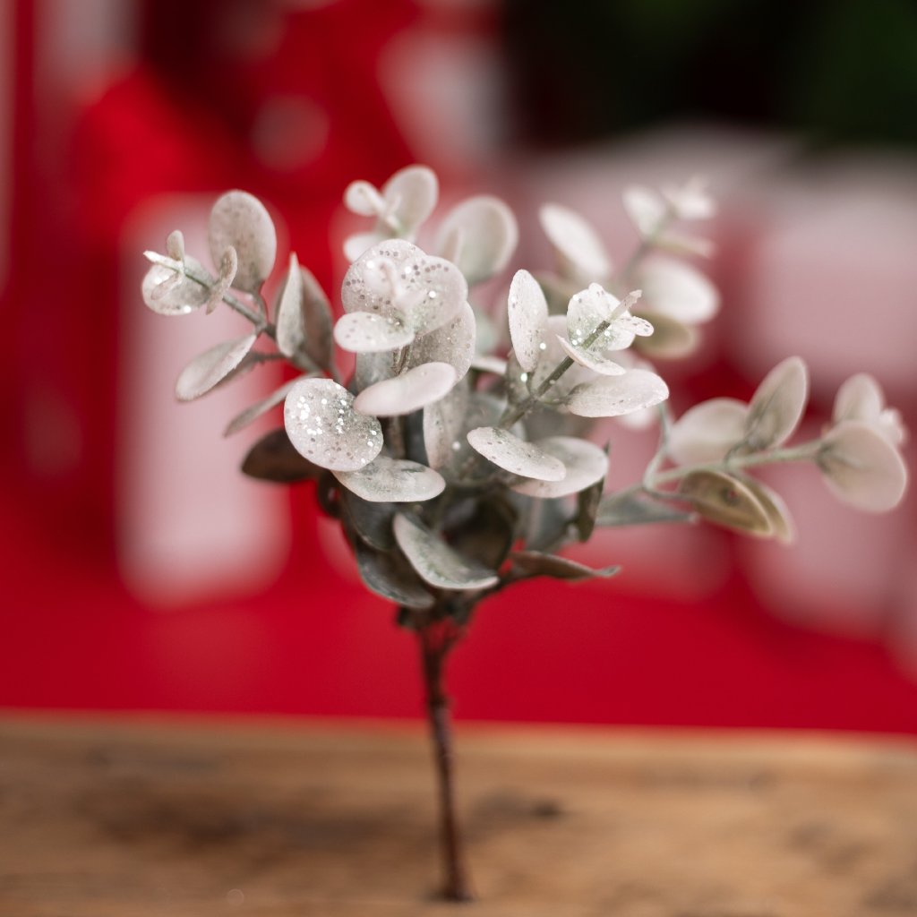 Zväzok zápichov trblietavý eukalyptus 18cm. Zväzok má 6 stopiek. Vhodné ako doplnok vencov a dekorácií.